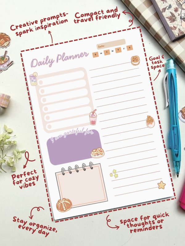 A daily planner helps you break big goals into manageable steps, track progress, and stay consistent. It also keeps important tasks from being forgotten, whether you’re managing school assignments, office work, personal goals, or your small business. By planning each day, you build better habits, work more efficiently, and end your day with a sense of accomplishment rather than overwhelm.
