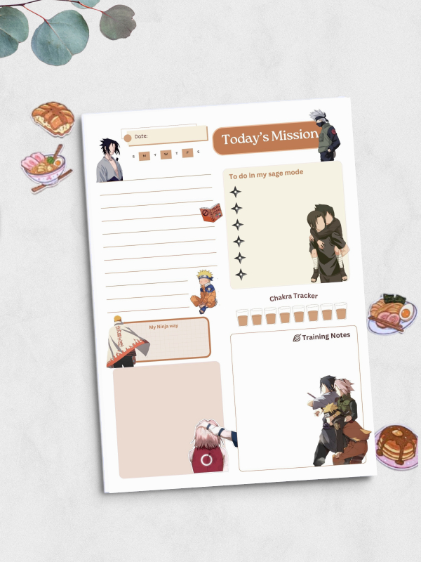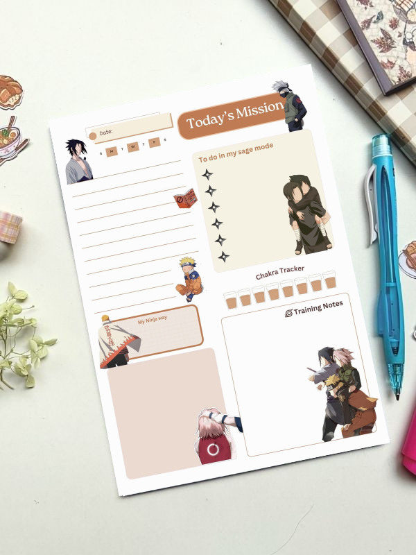 Daily planning encourages you to prioritize tasks, set purposeful objectives, track habits, and break larger projects into manageable steps. By writing down your plans instead of relying on memory, you reduce stress, strengthen focus, and create a steady routine—much like the dedication and persistence seen throughout every shinobi’s journey.