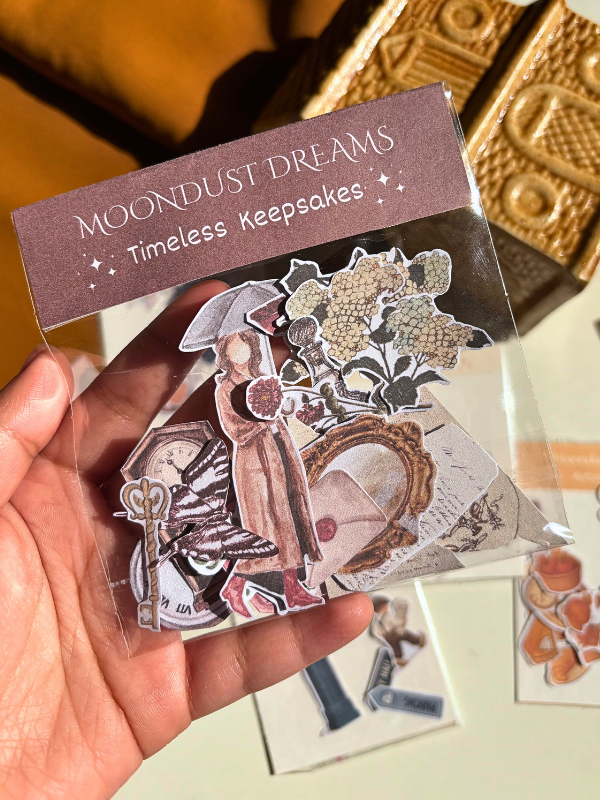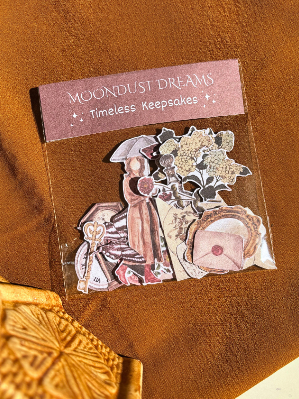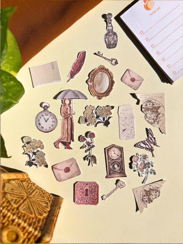 The Timeless Keepsakes vintage sticker pack is a thoughtfully curated collection inspired by old letters, faded paper textures, antique motifs, and nostalgic details. Designed for journaling, scrapbooking, and decorative use, these stickers add a soft, vintage touch to everyday pages.